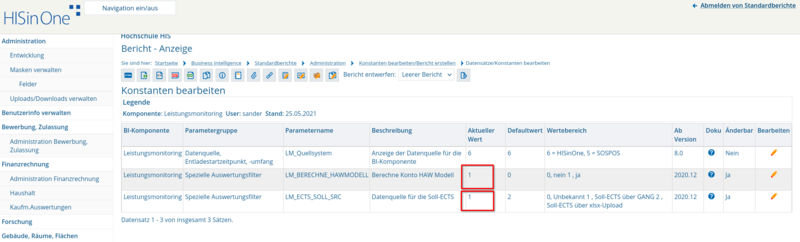 Steuert, welche Datenquelle Sie für das Soll wählen. Siehe Anleitung im ECTS-Leitfaden.